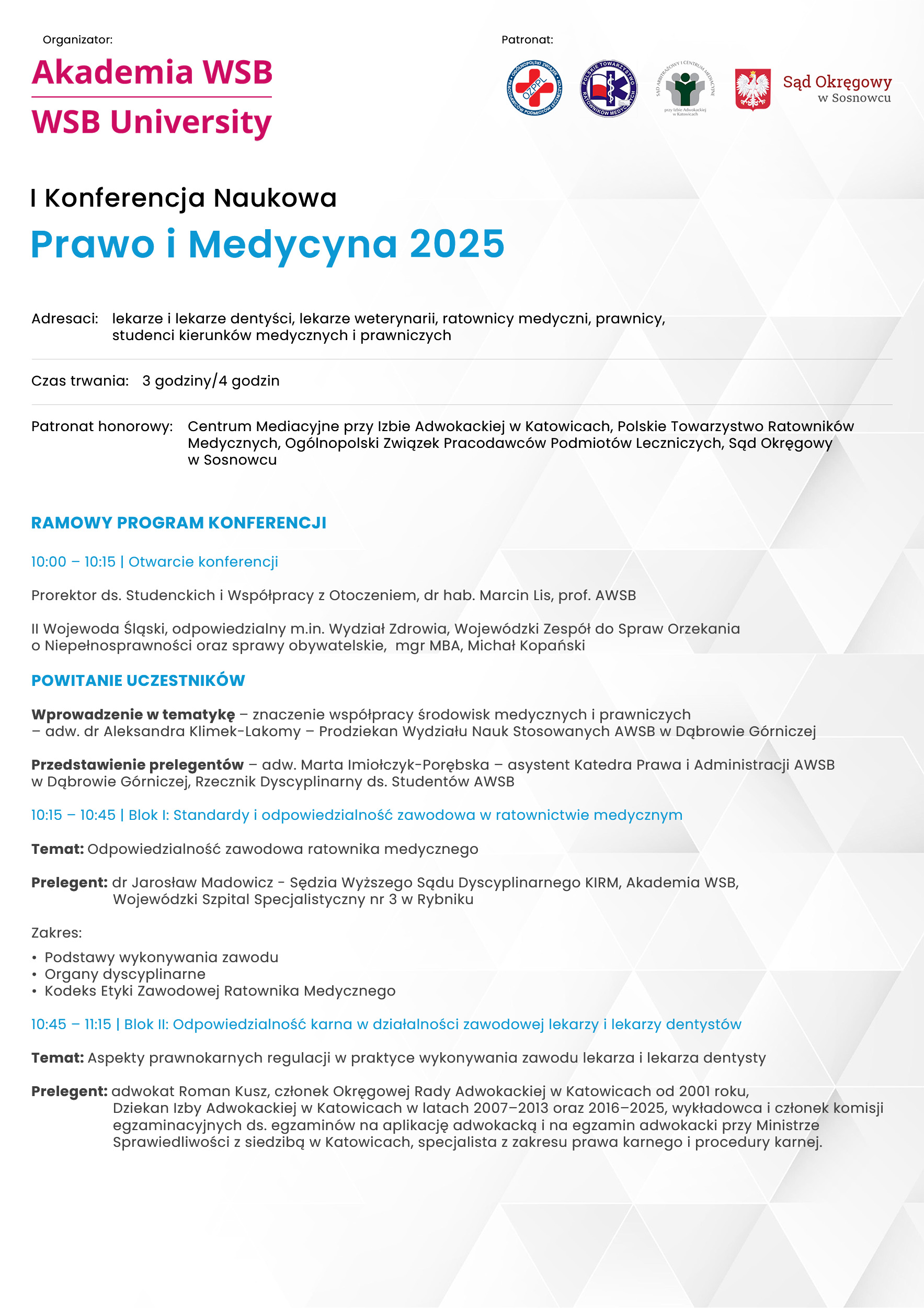 W mieniu Adwokatów-Mediatorów zapraszam Państwa do zapoznania się z listą Mediatorów Centrum Mediacyjnego przy Izbie Adwokackiej w Katowicach oraz do skorzystania z ich umiejętności i kwalifikacji.