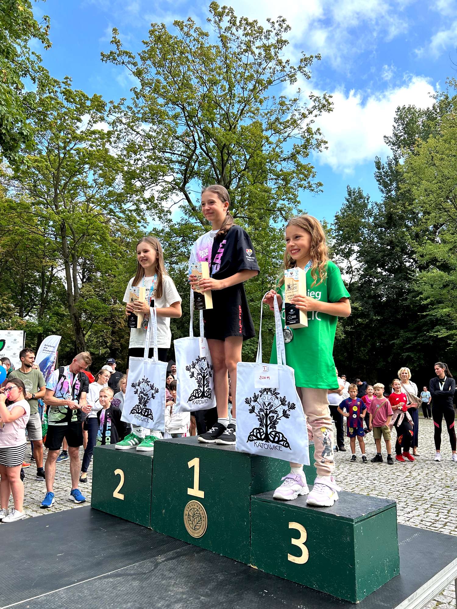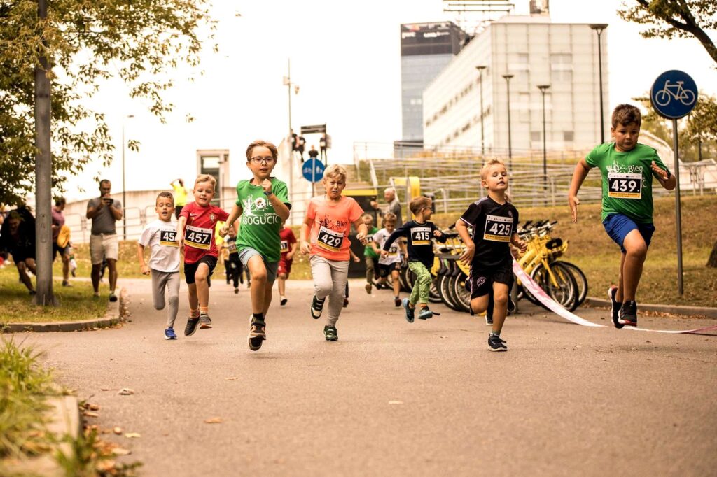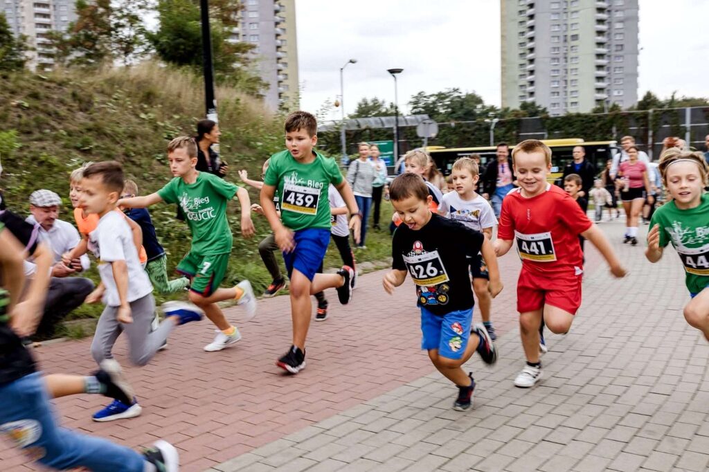 Sportowe emocje rozpoczęły się od trzech biegów dziecięcych – w kategoriach 100 m, 200 m i 400 m. Najmłodsi zawodnicy dali z siebie wszystko, a radość na mecie była bezcenna. Każde dziecko otrzymało pamiątkowy medal, który stał się symbolem ich wysiłku i świetnej zabawy.
